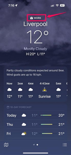 したがって、このようにして、iOS 18のiPhoneのWeatherアプリのショーホームとワークラベルを有効にして、アプリ内の上記のラベルを表示できます。