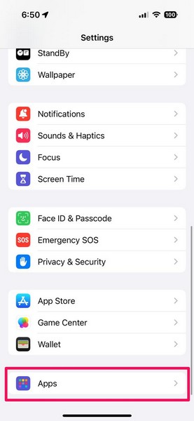 2。タップしますアプリ[設定]ページのオプション。