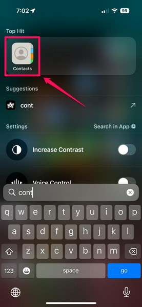 1。開きます連絡先アプリあなたのiPhoneで。