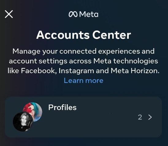 - 左の列メニューで、選択しますメタアカウントセンター。