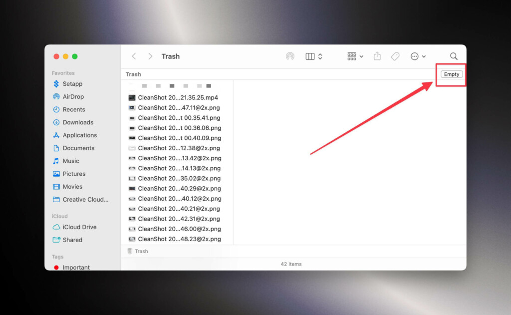 14。を選択します空のごみアプリのオプション。