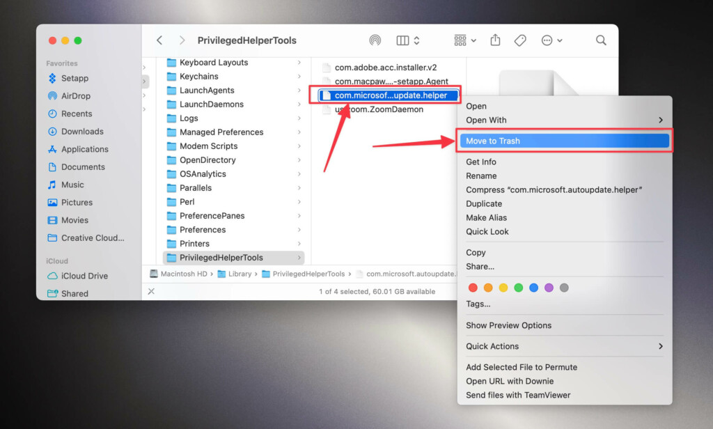 10。右クリックしますcom.microsoft.autoupdate.helper.plist選択しますゴミに移動しますオプション。