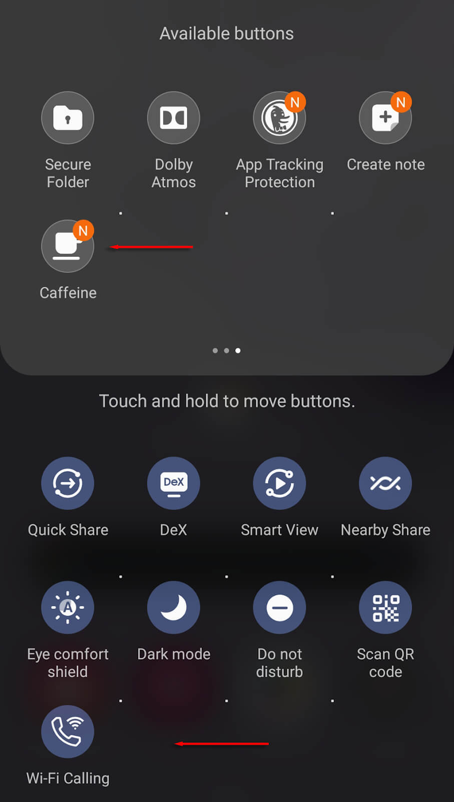 - ここで、電話画面をオンにしておくときはいつでも、通知パネルにアクセスするだけで、enableを有効にします。カフェイン。