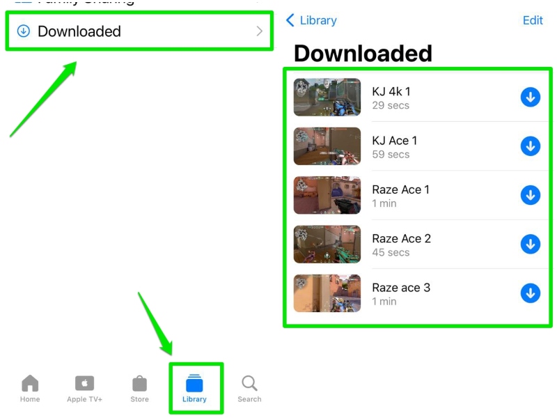 11。選択した映画がiPhoneで同期されたら、でそれらを見つけることができますダウンロードされたフォルダーの下ライブラリタブでiPhoneのApple TVアプリ。