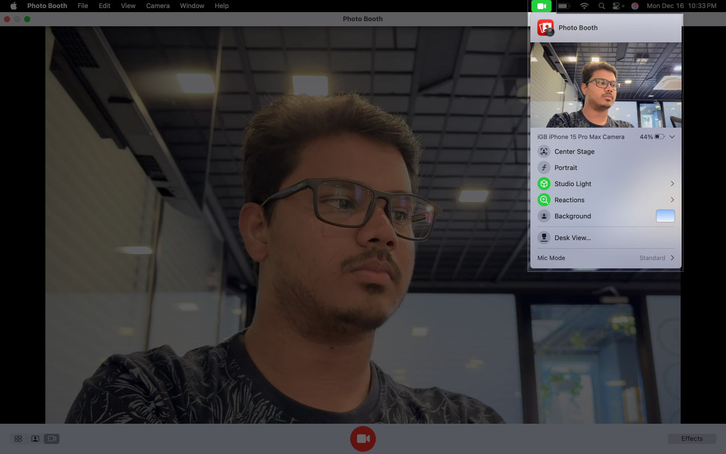 または、FaceTimeアプリと組み込みのMacOSスクリーンショットユーティリティを組み合わせて、MACに適切な品質の画像をキャプチャすることもできます。これがどのように見えるかです: