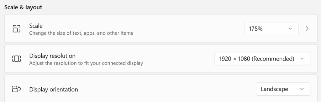 注記:プライマリディスプレイのアプリは、結果としてより良く見えます。また、100〜500のカスタムスケーリングサイズを入力することもできます。ディスプレイは、指定した特定のスケーリングサイズに調整されます。