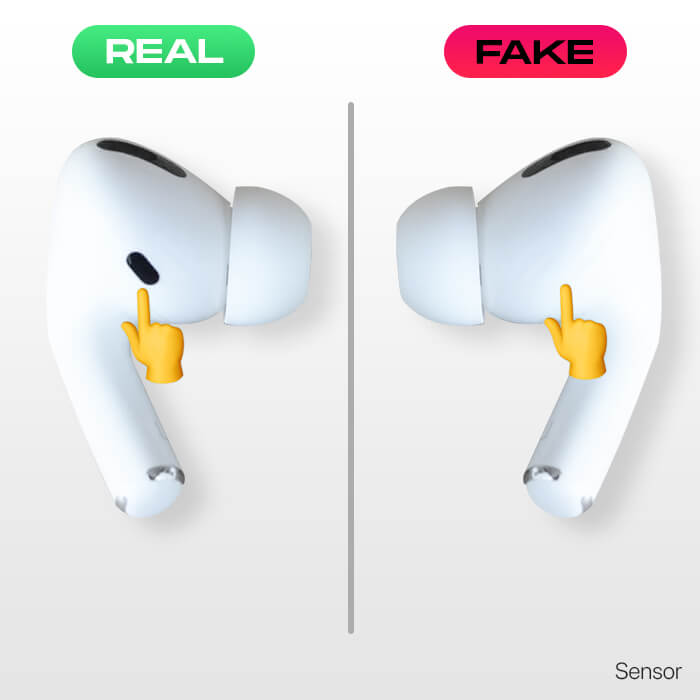 対照的に、Fake Airpods Proにはこれらのセンサーがなく、力センサーの代わりにボタンがあります。