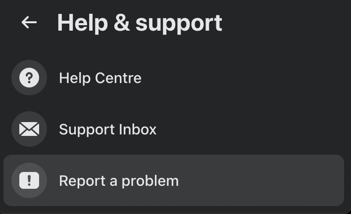 Facebookに連絡する1つの方法は、ヘルプとサポートを使用することです。スマートフォンとデスクトップの両方で行うことができます。レポートをFacebookに提出するには、開いてくださいメニュー画面の右上隅で、パスに従ってくださいヘルプとサポート>問題を報告します。