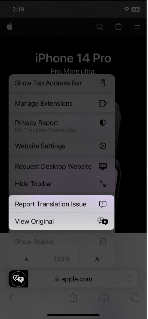 iOS 17を使用する場合、デバイス言語が翻訳するWebページと同じ言語に設定されているため、翻訳オプションが欠落している場合があります。その上、ウェブサイトはSafariの翻訳ツールと互換性がないか、好みの言語をサポートしない場合があります。