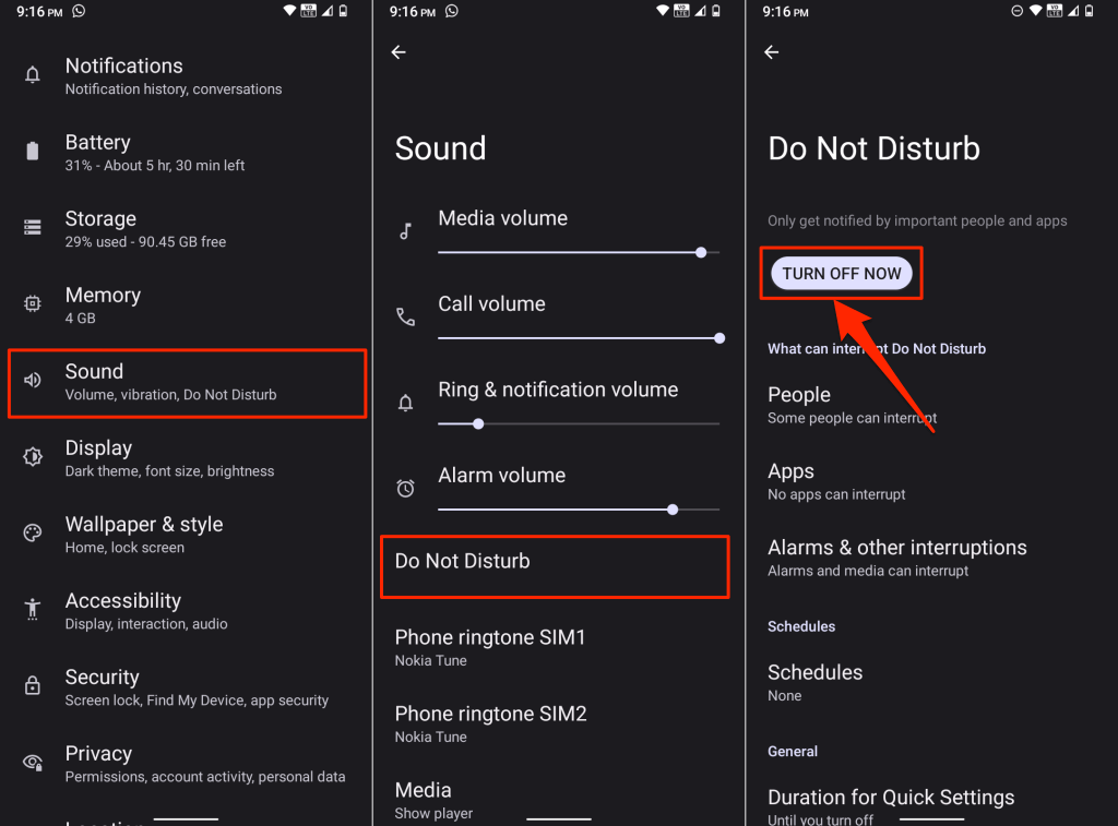 偶然にDNDを有効にした場合、または通知を沈黙させる必要がなくなる場合は、以下の手順に従ってオフにします。