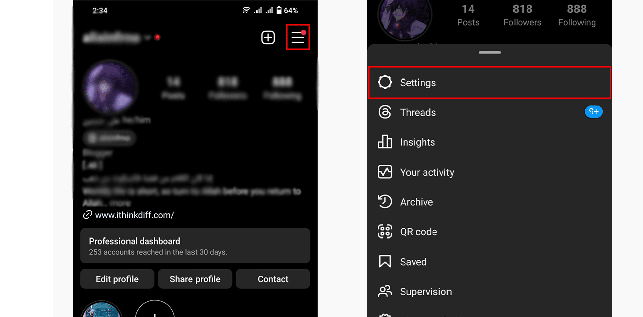 - スマートフォンでInstagramアプリを開き、プロフィールに移動します。