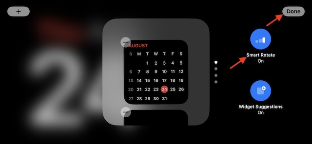 何らかの理由で、あなたがウィジェットのスマートローテーションのファンではない場合、または自分のペースでウィジェットを制御したい場合は、手間をかけずに無効にすることができます。スタンバイモードを表示するだけです - >最初の画面にタッチして押し続けます - >スマート回転ボタンをタップして無効にしてから、[完了]ボタンを押して完了します。