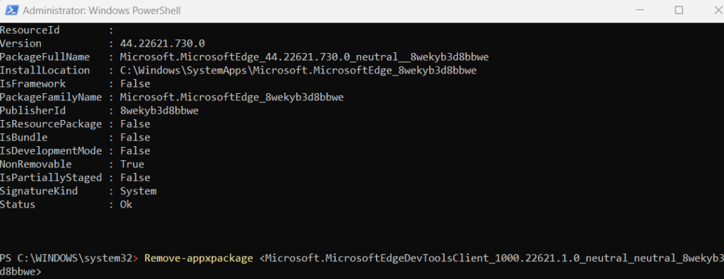 上記のすべてのコマンドが完全に実行されると、Microsoft EdgeブラウザーはWindows 11/10 PCからアンインストールされます。システム上でマイクロソフトエッジアプリを手動で検索して、システムからアンインストールされているかどうかを確認できます。
