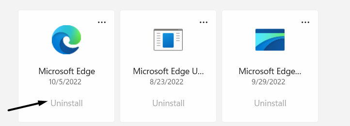 3。Microsoft Edgeが見つかったら、をクリックしますアンインストールMicrosoft Edgeアプリの下のボタンは、システムからアプリをアンインストールします。