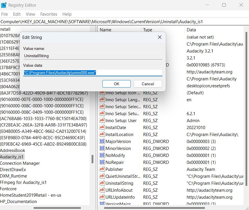 HKEY_LOCAL_MACHINE>SOFTWARE>Microsoft>Windows>CurrentVersion>Uninstall