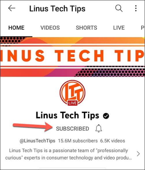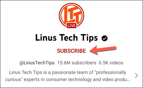 - チャンネルのホームページで、タップしますサブスクライブボタンチャンネルの名前の下。