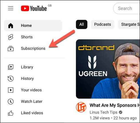 - Webブラウザから、YouTubeを開き、Googleアカウントでサインインして、サブスクリプション左側のサイドバーからタブ。