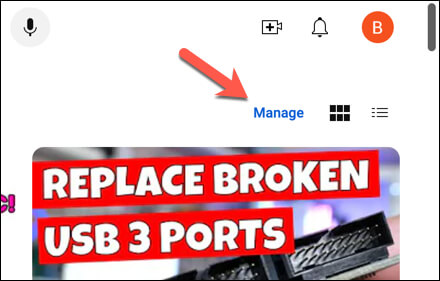 - 購読しているチャネルのリストと最新のビデオが表示されます。を選択します管理最上位のボタン。