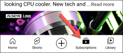 - タップしますサブスクリプション画面の下部にあるメニューのアイコン。上部で購読しているチャンネルと最新のビデオのリストが表示されます。