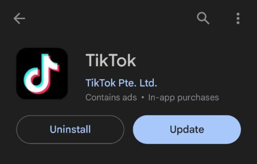 - 更新が利用可能な場合は、次のオプションが表示されますアップデートその隣のTiktokアプリ。
