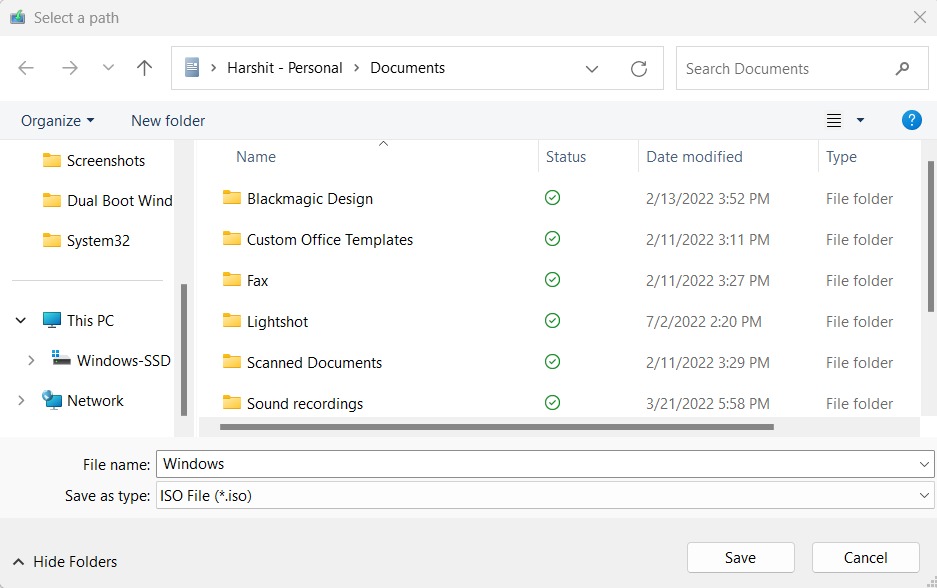 2。Windows 11ディスクイメージファイルを保存した場所に進みます。