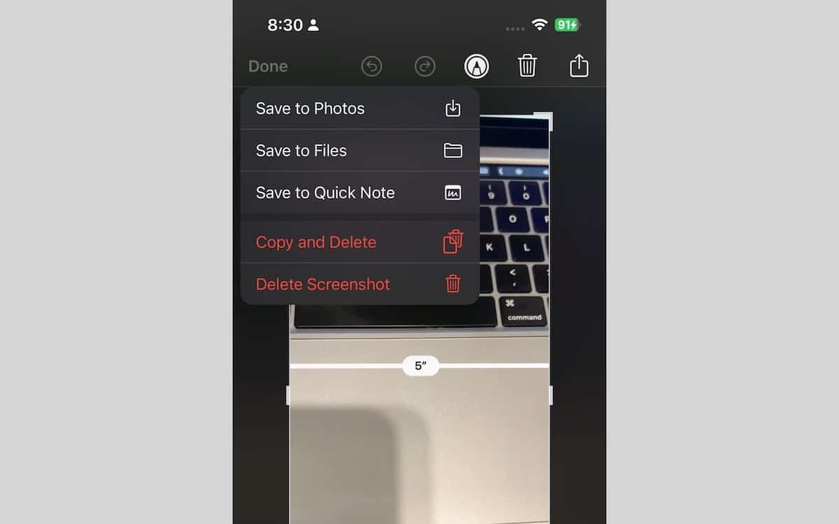 - 次に、スクリーンショットをタップして、編集、共有、削除します。
