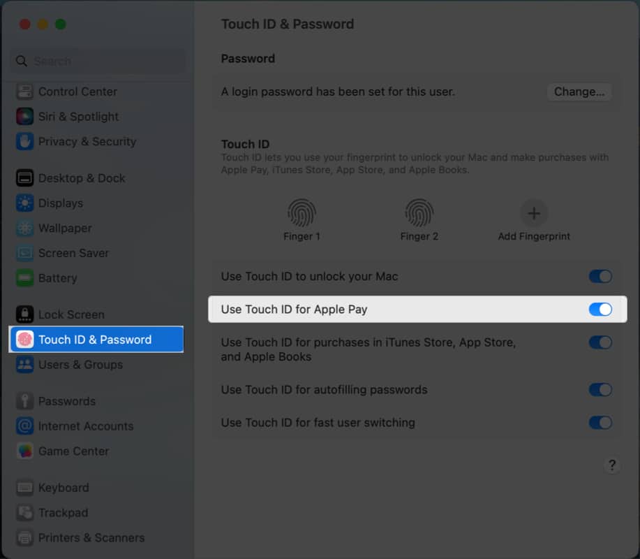 まだ行っていない場合は、MacのタッチIDを有効にするためのガイドを紹介します。必ず切り替えてくださいApple PayにTouch IDを使用してください。