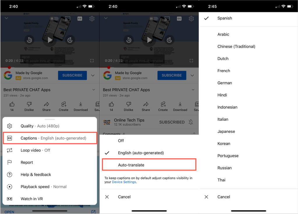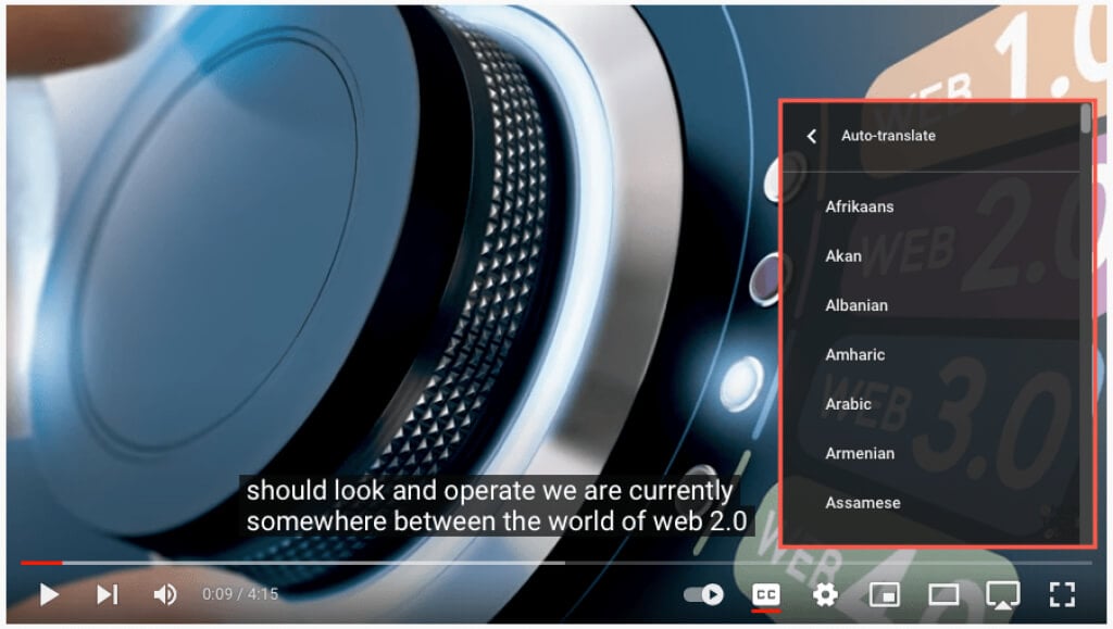 言語やボリュームは、YouTubeでビデオを楽しむことを止めるべきではありません。閉じたキャプションを使用して、リアルタイムの単語を見るだけでなく、それらを聞くことができます。自動翻訳機能を使用すると、キャプションを選択した言語に変換できます。
