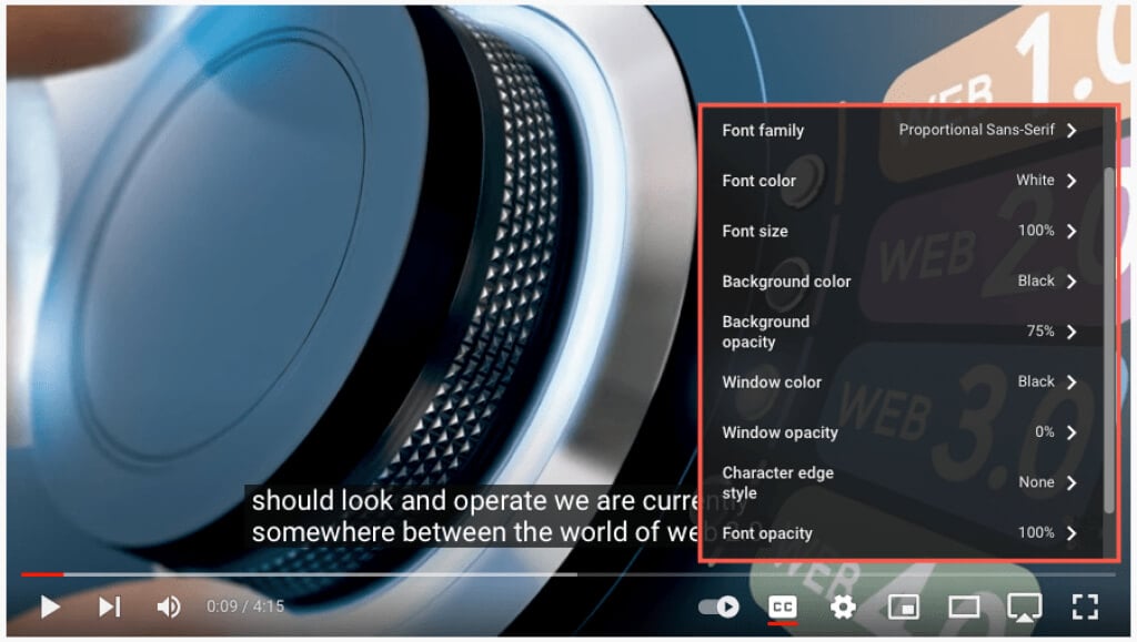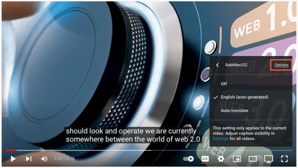 自動翻訳はYouTubeの閉じたキャプション機能の一部であるため、キャプションをオンにしてカスタマイズすることから始めましょう。