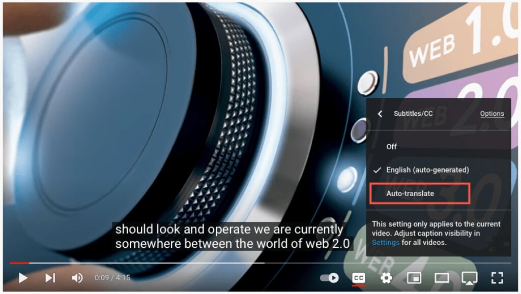 ビデオは外国語であるためにビデオをスキップする代わりに、YouTubeの自動翻訳機能を使用できます。