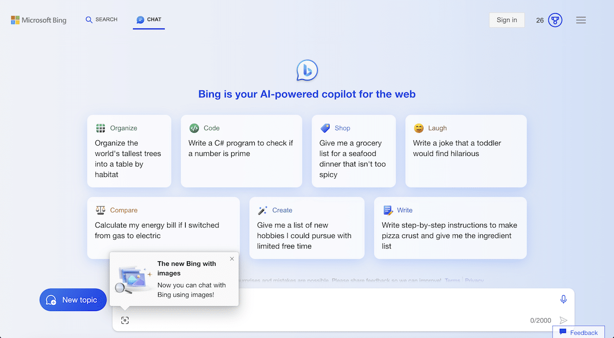 9月、MicrosoftはAIを搭載した副操縦士を、Chat GPT-4に基づくBing、Edge、およびその他のソフトウェアに拡大しました。これは、BingまたはEdgeを備えたGPT-4がすべてのデバイスですべてのために無料で利用できることを意味します。