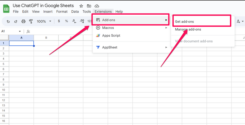 Googleシートでシートとドキュメントの拡張機能のGPTを取得するのはかなり簡単です。以下の手順に従って、Googleシートアカウントに拡張機能をダウンロードしてインストールしてください。