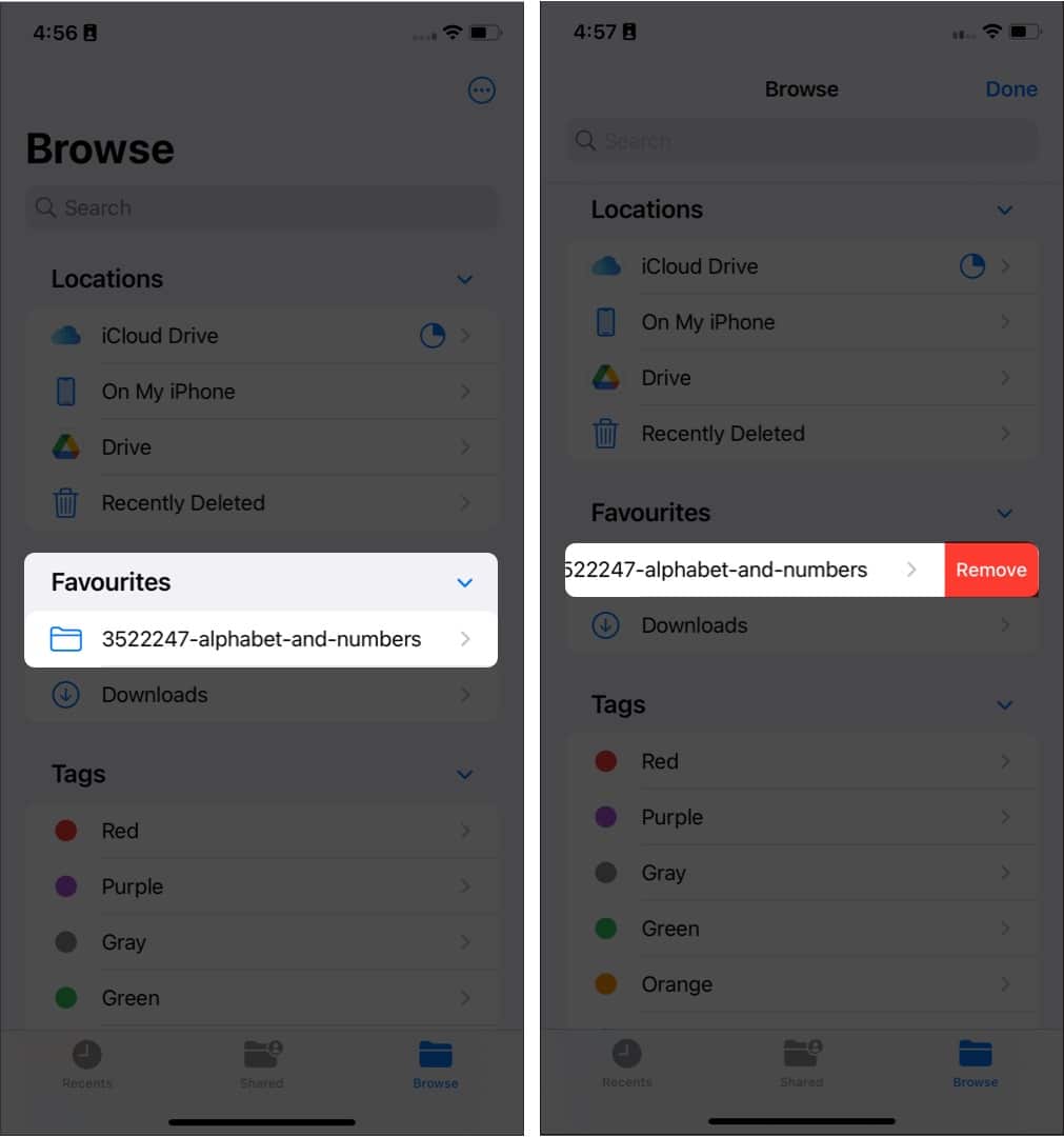 フォルダをタップして保持することもできます。選択します取り除くお気に入りからそれらを削除する。