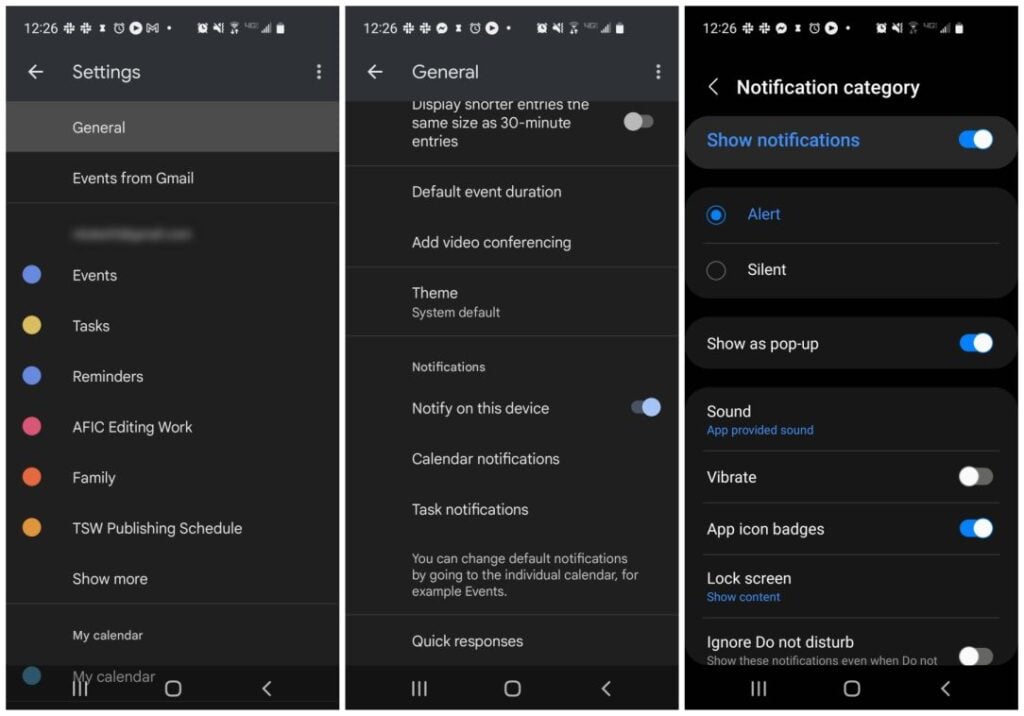 一般メニューで、[enable]を選択しますこのデバイスに通知します、そしてタップしますカレンダー通知。
