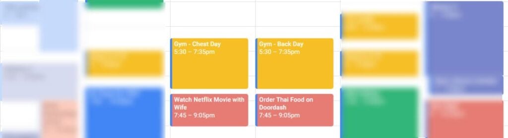 たとえば、私は週に数日間ジムに行きたいと思っています。また、妻と時間を過ごしたいです。 Netflixの映画を一緒に見るのが大好きなので、ジムイベントの後にそのアクティビティを組み合わせています。翌日、私たちはジムの後に健康的なDoordashの食事を注文し、その週に正常にワークアウトするための週に1回の報酬として注文します。