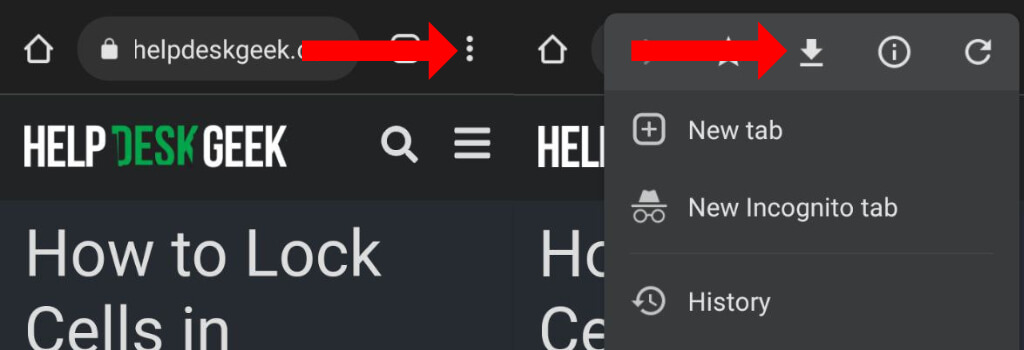 もう一度読みたいときは、クロムを開いて、タップします3ドットアイコン右上のコーナーで、選択しますダウンロード。保存された記事がここに表示されます。この機能は、AndroidのChromeの「読書リスト」と明示的にラベル付けされていませんが、非常に同じことです。