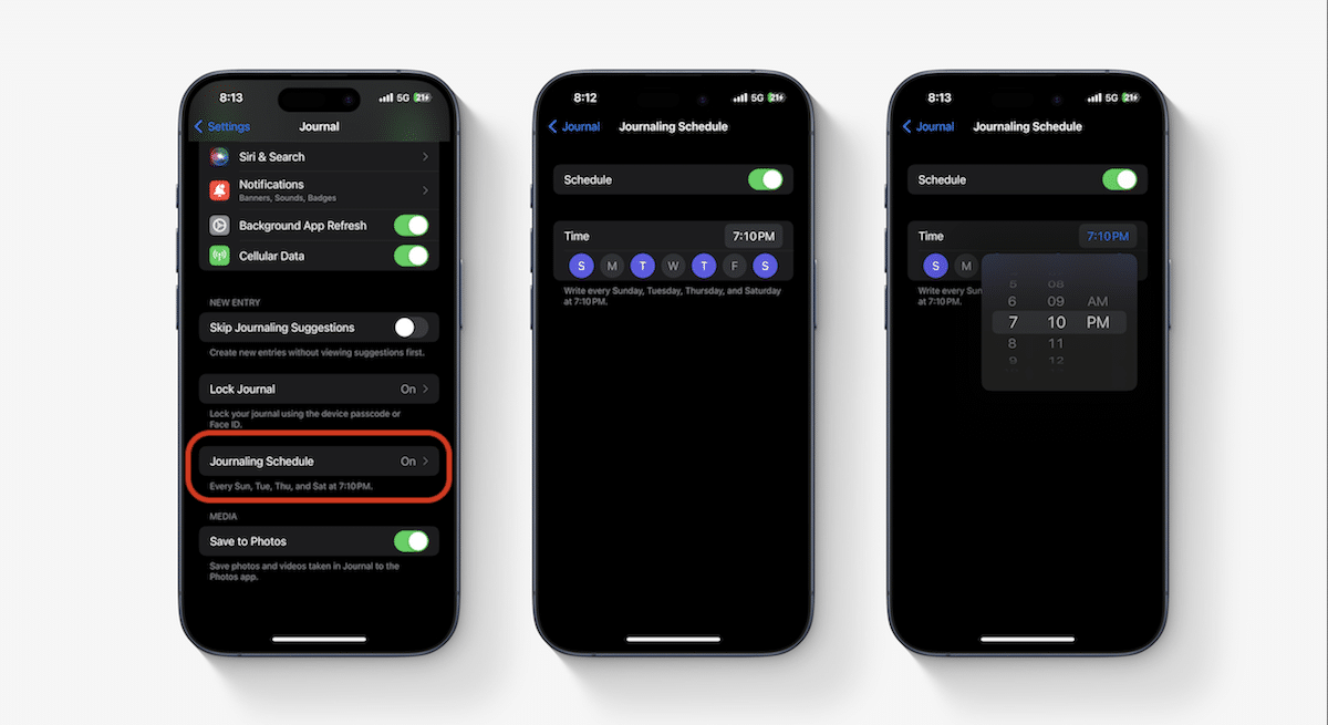 ジャーナリングが好きで、忘れがちな場合は、ジャーナルエントリをスケジュールできます。この機能は、エントリを書いて毎日のスケジュールを維持するために、その日に時間を設定するのに役立ちます。