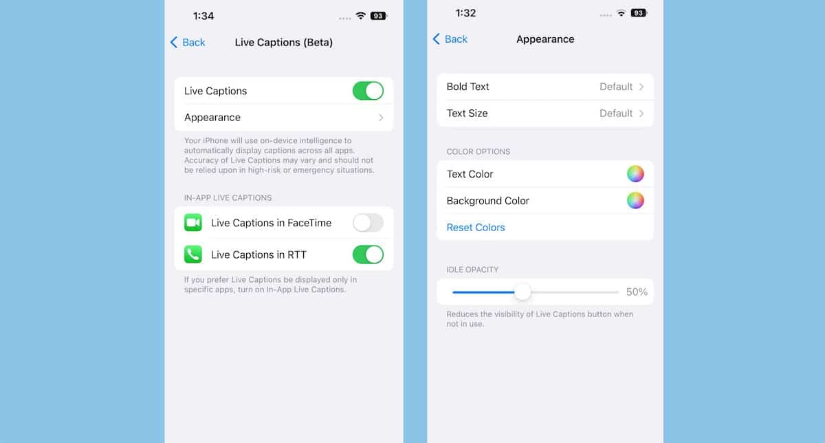 - 設定アプリ> AccessBility>ライブキャプション>外観。