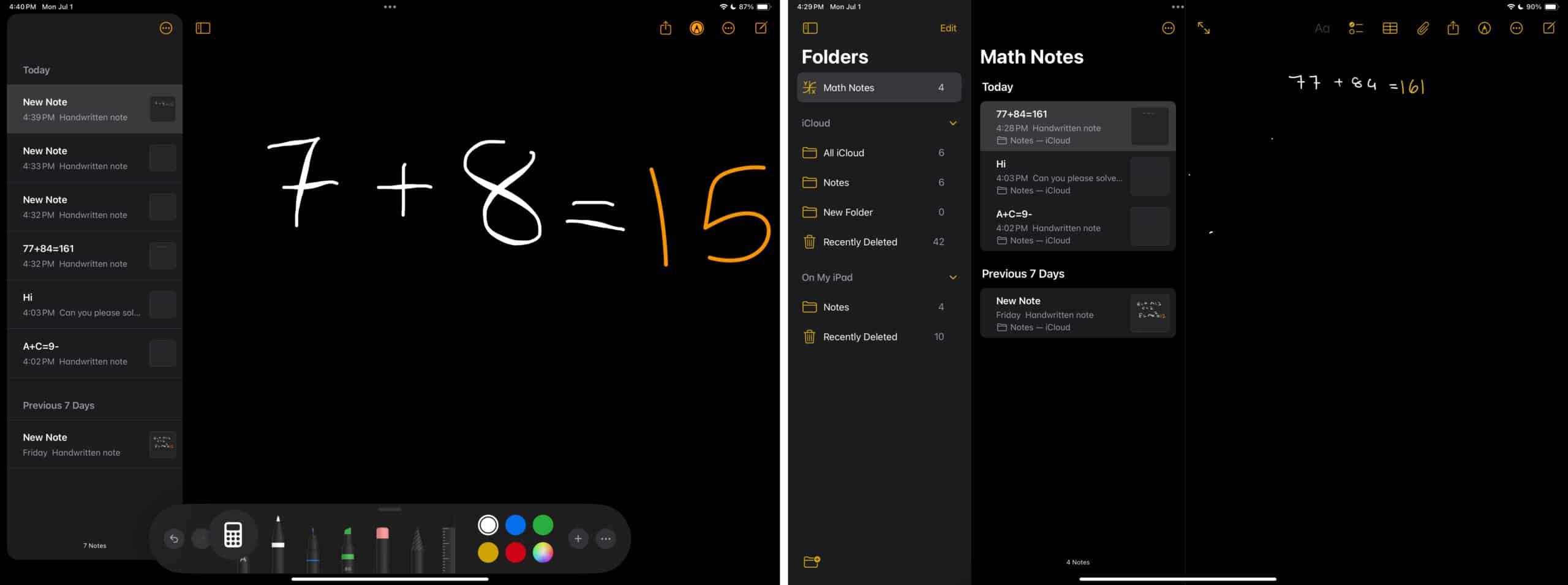 iPadとiPhoneの両方の数学ノート機能は同じです。それは、より大きな画面とApple Pencilとの互換性がiPadで数学のメモをより楽しくすることです。