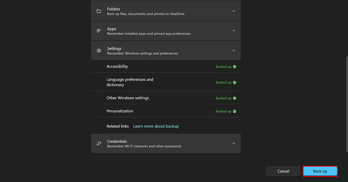 - クラウドバックアップ:新しいWindowsバックアップアプリを使用すると、データをOneDriveにバックアップできます。これは、Windows 11に含まれているクラウドストレージサービスです。これにより、どこからでもデバイスでバックアップに簡単にアクセスできます。