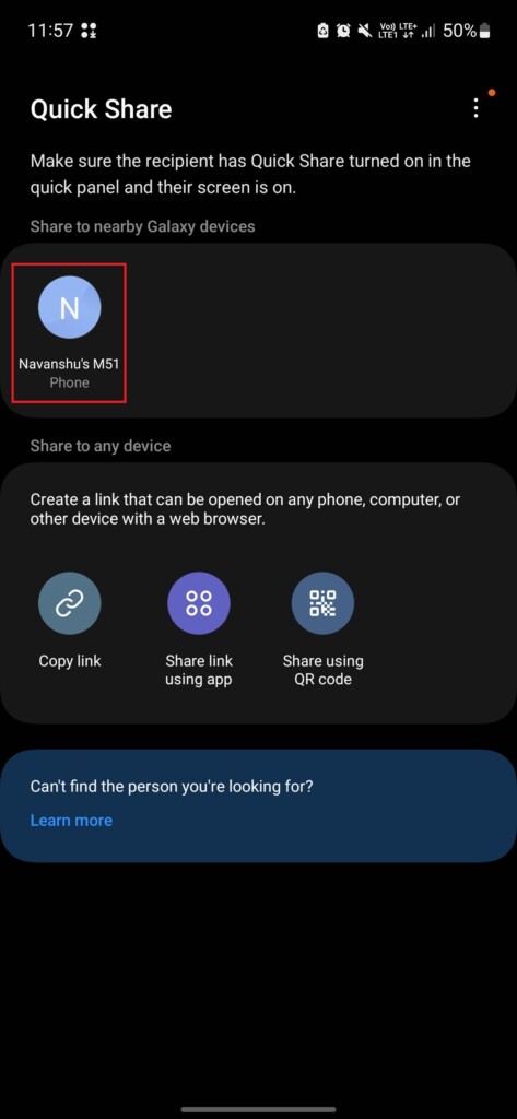 はい、ファイルをAndroidデバイスと共有できます。迅速な共有があるかどうかは関係ありません。唯一の制限は、より速く使用できることです近くの共有この状況のクイック共有のオプションですが、いつでも使用できますリンクとして共有しますオプション。