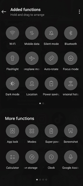 - 上のアイコンはすでに通知パネルにあり、以下のアイコンはユーザーを通知パネルの上に追加できます。