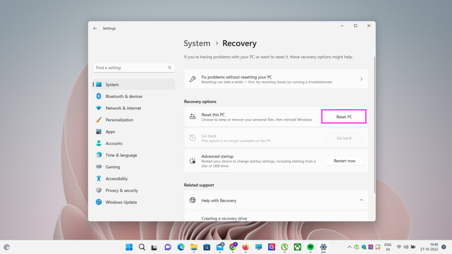 スマートアプリコントロールが非アクティブ化されている場合、OSを再インストールするか、コンピューターをリセットする必要があります。先に進む前に、それらをバックアップすることをお勧めします。このオプションは、安全であるためにファイルを保持します。リセットプロセスは、すべての設定とアプリケーションも削除します。だから、ここにそれを行う方法があります。