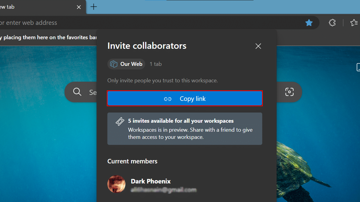 - 完了すると、開くタブはすべて、エッジワークスペースにアクセスする人に表示されます。ただし、この機能は、ログイン、Cookie、パスワードなどのブラウザや機密アカウントデータを共有しません。