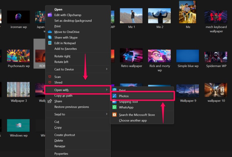 2。の場合写真アプリはデフォルトの画像ビューアーとして設定されていませんまたはデバイスのビデオプレーヤー、画像またはビデオファイルを右クリックしますコンテキストメニューを表示します。あなたが持っているなら写真アプリは、デフォルトの画像ビューアーとして設定されていますまたは、デバイス上のビデオプレーヤー、簡単にできますファイルをダブルクリックして開きますそして次のステップをスキップします。