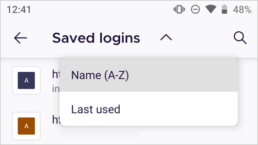Androidで、リストからログインを選択し、タップします3つのドット、そして選んでください編集。変更を加えてタップしますチェックマーク。