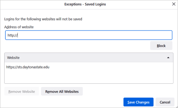 例外リストは、Firefoxに保存するのではなく、毎回パスワードを入力することを好む金融機関やPayPalなどのサイトに適しています。