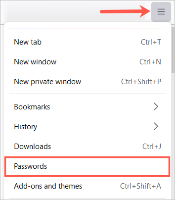 - 右上にFirefoxメニューを開き、選択しますパスワード。