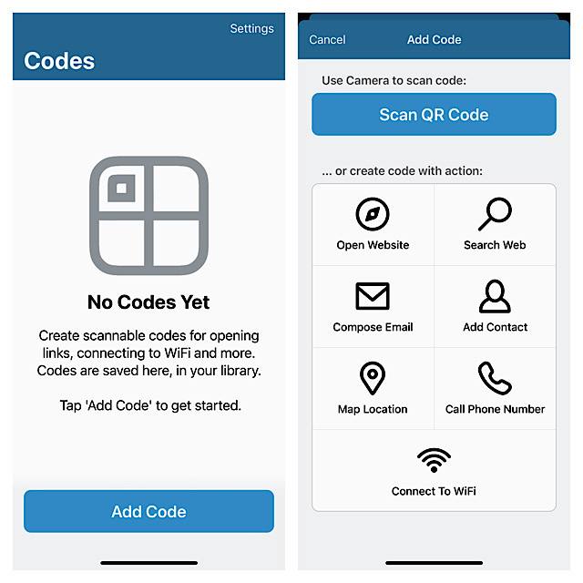 このアプリの私のお気に入りの機能の1つは、Siriを介して視覚コードを起動せずにお気に入りのQRコードにアクセスできる「ピン留めコード」を設定する機能です。そうです無料で利用できますiOS 13以降をサポートします。