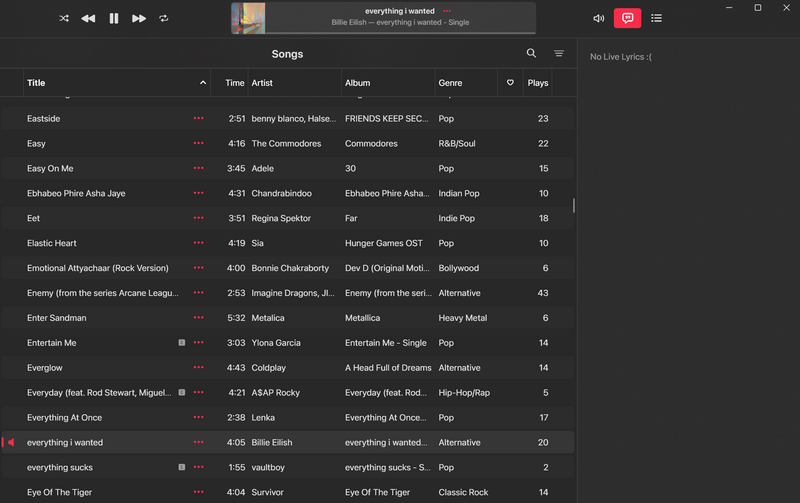 1。 曲を見つけますWindows 11デバイスのApple Musicアプリで歌詞を表示したいと思います。
